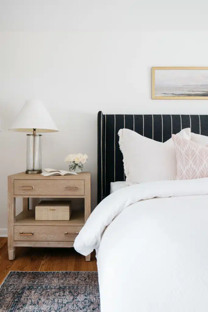 A St. Charles interior design project that balances beauty and utility—transforming a primary suite and bath into a timeless, layered retreat for modern luxury living.